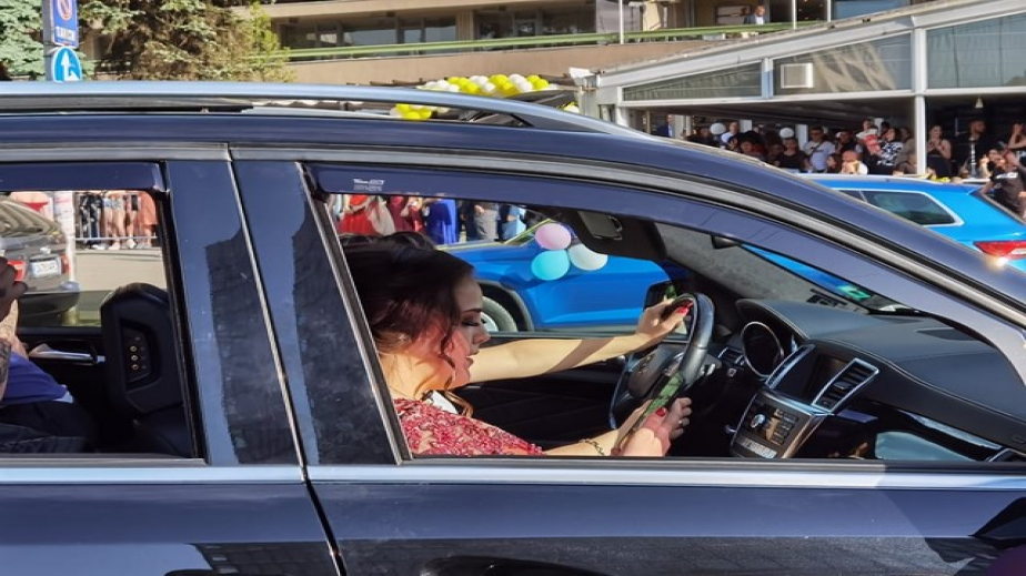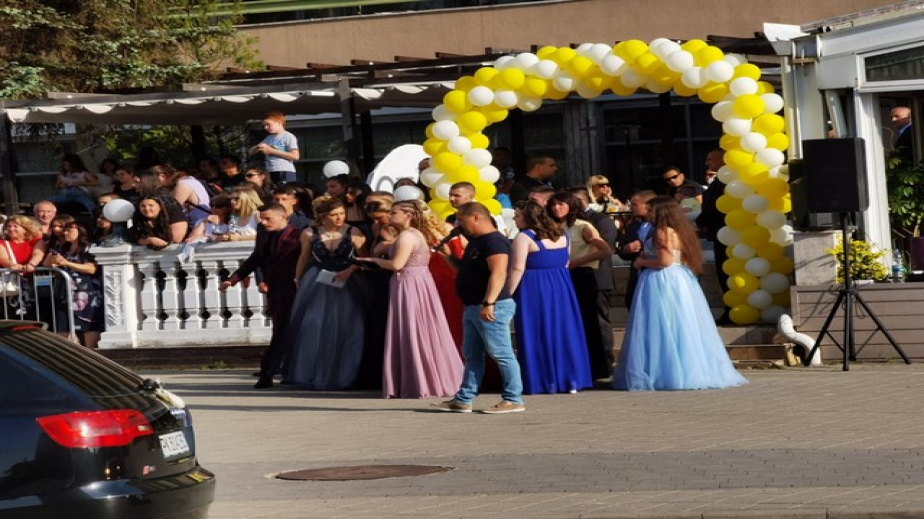 Зрелостниците започнаха да пристигат около 18,30 ч. Сред най-аткрактивните обаче бе възпитаничка на училището, която дойде с джип „Мерцедес“, ескортиран от 6 мотоциклета. Малко преди да слезе на червения килим, мотористите започнаха да форсират машините. Децибелите обаче смутиха голяма част от хората, които се бяха събрали да гледат абитуриентите.
