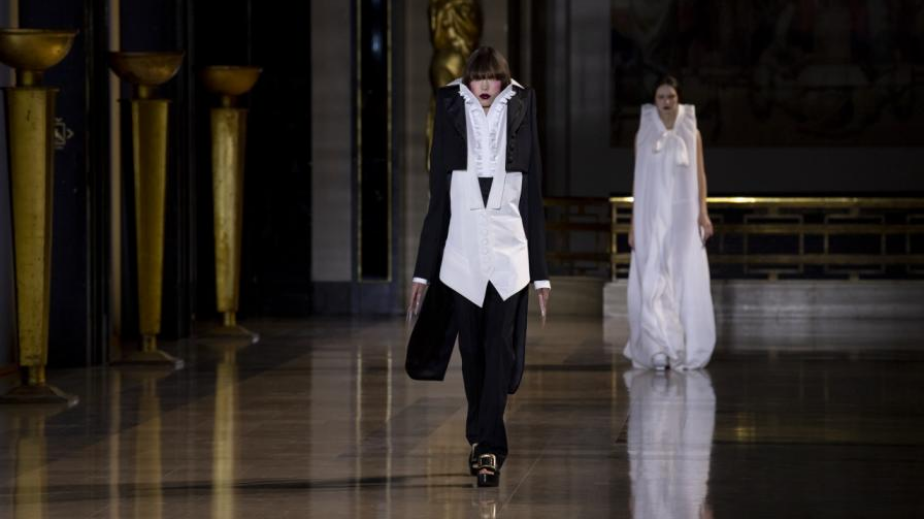 Със стил, който повече подхожда на филм на ужасите, отколкото на модно ревю, модели излязоха на подиума в Париж вчера в прегърбени тоалети. Тези необичайни дизайни са новите творения на нидерландското дуо Виктор и Ролф от Седмицата на модата.