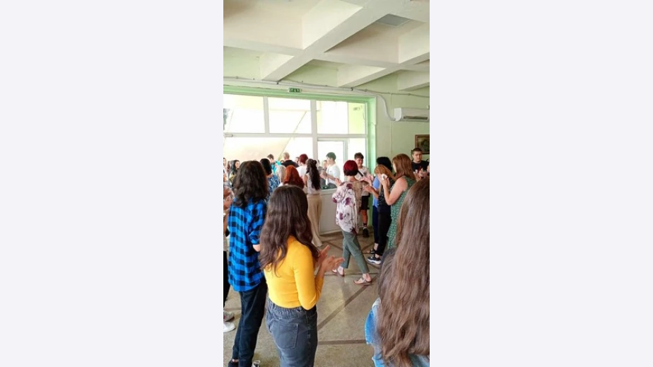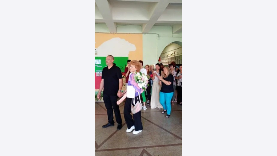 Доайенът на VI СУ "Св. Св. Кирил и Методий" в Перник госпожа Людмила Ангелова се сбогува с училището вчера, защото илиза в пенсия. Тя бе изпратена с аплодисменти от колеги и ученици.