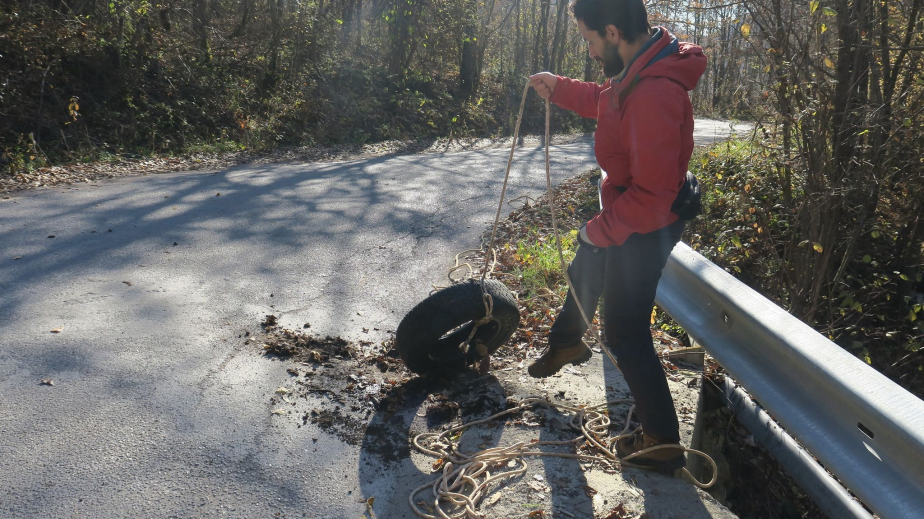 Пълни с ентусиазъм и със загриженост към бъдещето, младите хора за кратко време успяха да извадят над 60 автомобилни гуми с различни размери от площта на дерето от около 50 кв. метра, което години наред е служело като „склад“ за ненужните вече автомобилни аксесоари.