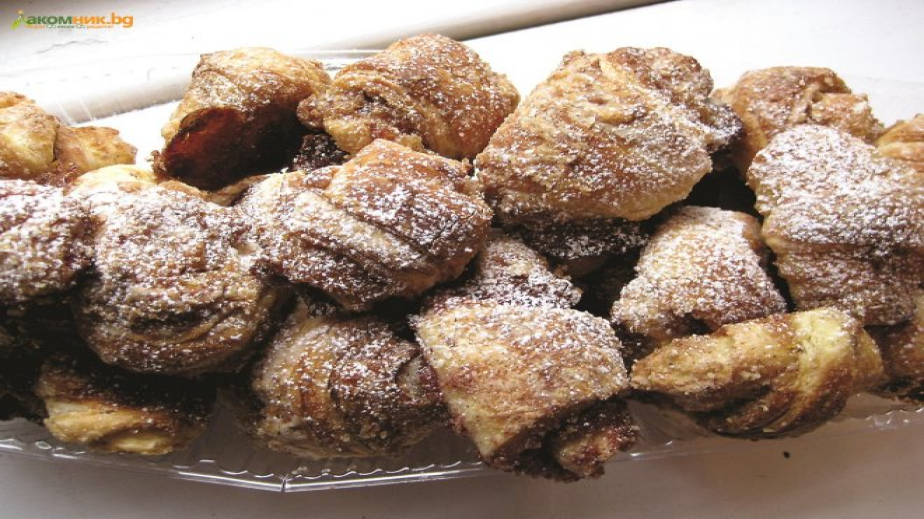 Всяко от тестото разделяме на по две части, общо 4 еднакви топчета. Разточваме какаова кора с дебелина 3-4 мм. След това разточваме кокосовата кора със същата дебелина и прехвърляме върху какаовата. Внимателно разточваме леко двете кори заедно, за да се слепят. Разрязваме на 12 части и навиваме кифличките като започнем от широката към тясната част. По същия начин процедираме и с другите две теста.