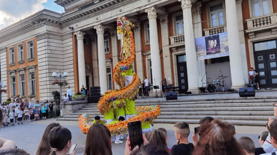 Изключително атрактивното представяне на танц с дракон възхити децата и техните родитли пред Дворц н културата.Чуха се радостни възгласи, а най-малките дори подгониха митичното животно.