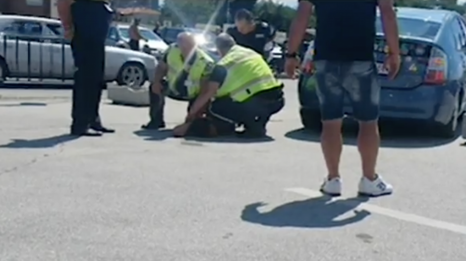 Един от полицаите взима камък и чупи прозореца на автомобила му, за да изкара шофьора, който е на възраст около 34 години. Пробата му за алкохол е отрицателна, но тестът му за наркотици е показал наличие на амфетамини.