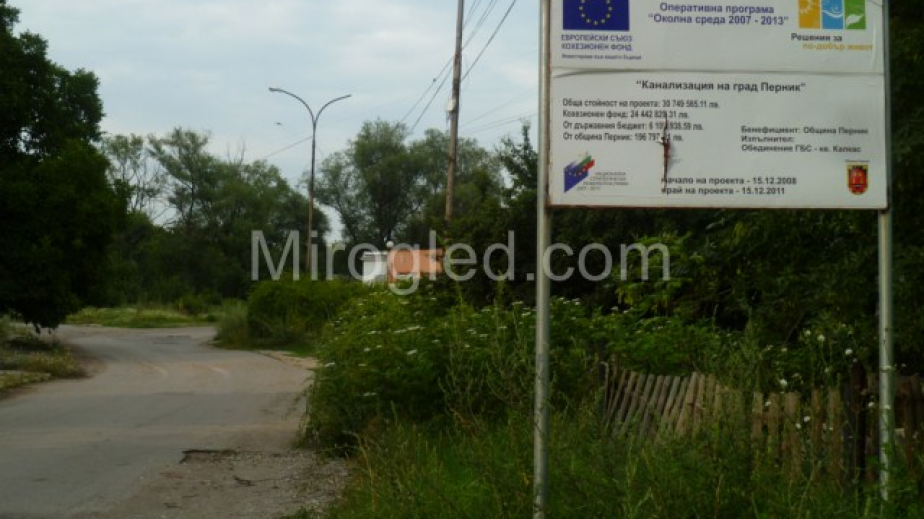 „Направиха канализация тук по проект по оперативна програма на Европейския съюз „Околна среда 2007 – 2013”, чийто бенефициент е община Перник. Тя бе изградена в периода 2008-2011 г. и обслужва квартал Калкас и още няколко населени места в града. Канализационните тръби, които минават под улица „Добруджа”, между Детска градина №15 „Райна Княгиня” и блок 16, са положени през 2010 година.