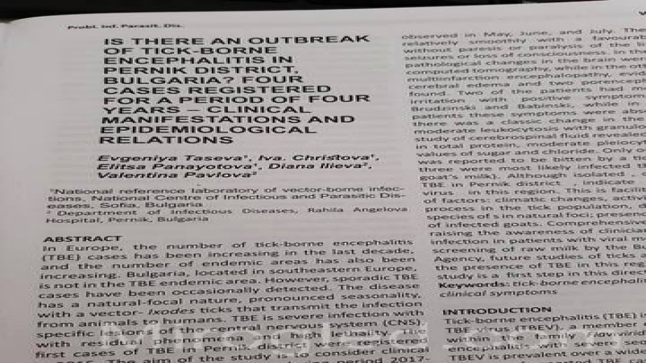 Две пернишки лекарки станаха известни в цял свят. Това са шефката на Инфекциозното отделение в МБАЛ „Рахила Ангелова“ д-р Валентина Павлова и колегата й д-р Диана Илиева. Двете са описали тежки случаи на усложнения на пациенти, ухапани от кърлеж и лечението им в международно списание за Проблемите на инфекциозните и паразитните заболявания. То се издава от Националния център по заразни и паразитни заболявания.