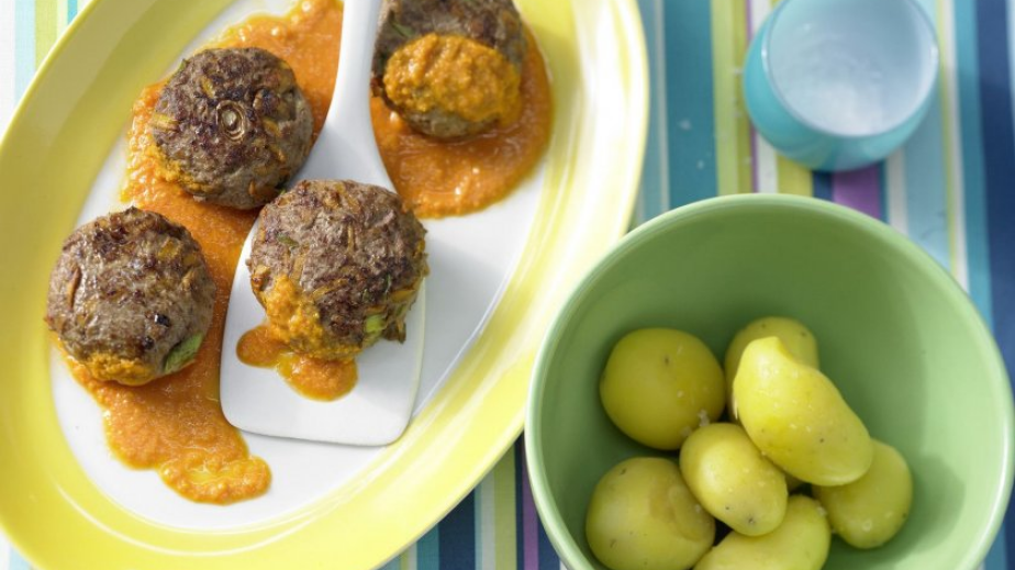Телешката кайма се омесва с изстискания хляб, пресния лук, джинджифила, чесъна, половината моркови, яйцето, сол и черен пипер. Оформят се кюфтета.