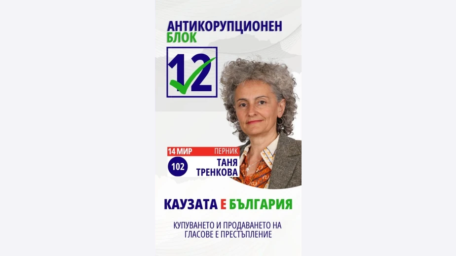 Таня Тренкова е кандидат за народен представител от коалиция Антикорупционен блок, с бюлетина № 12 и преференция 102