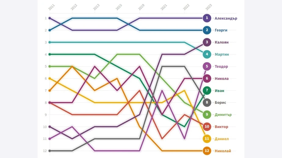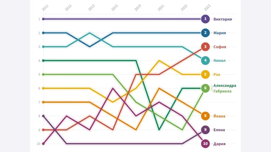 Виктория е фаворит на младите родители повече от десетилетие. Александър отстъпи лидерството пред Георги само за кратко между 2012-2015 г. и оттогава стои стабилно на върха.