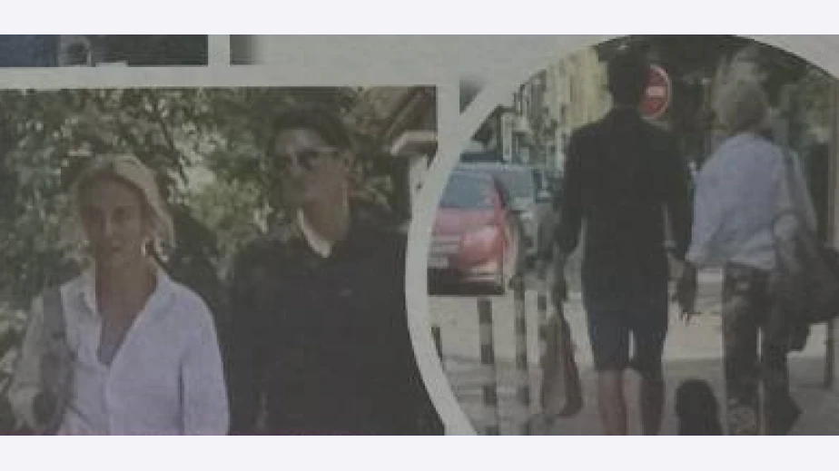 За тура си из града с новия любим русокосата актриса се беше издокарала с шарен панталон и бяла риза. Гаджето й пък носеше дънкови бермуди и тъмни очила, а в лявата си ръка стискаше хартиен плик с покупки. И той, и Радина бяха с ниски обувки бързоходки, за да припкат лежерно по столичните тротоари.