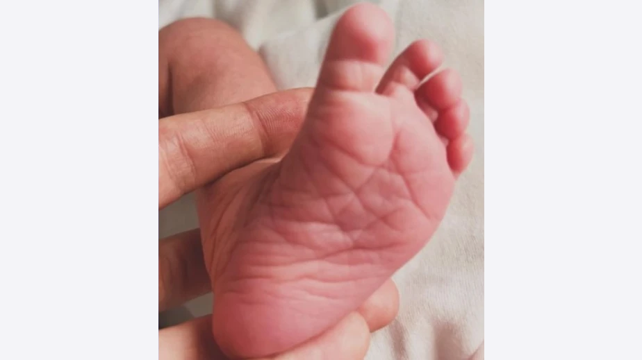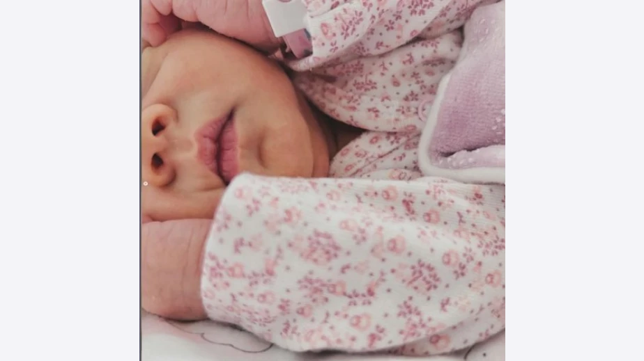 Тя публикува серия от снимки, включително една, на която е запечатано новороденото момиченце, облечено в розово, и друга, на която се вижда малкото краче на беба.
