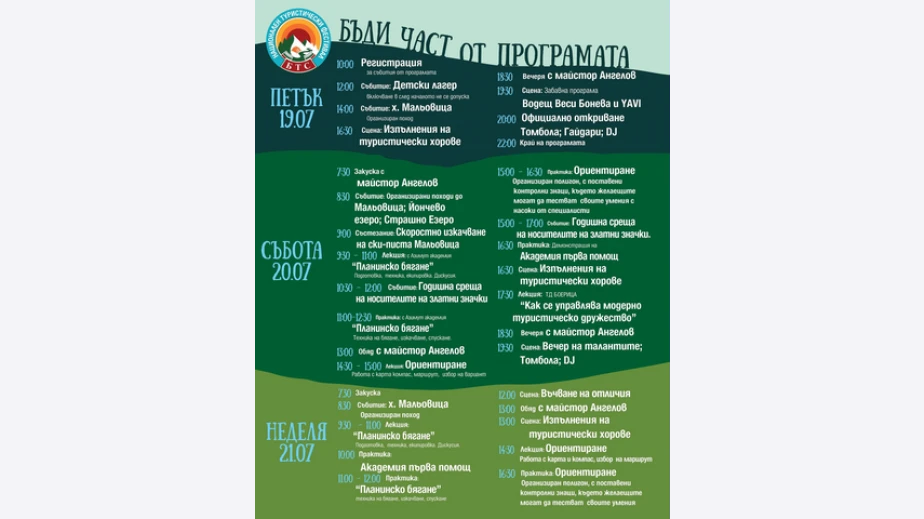 От днес до неделя в курортен комплекс Мальовица БТС ще проведе „Национален туристически фестивал“.