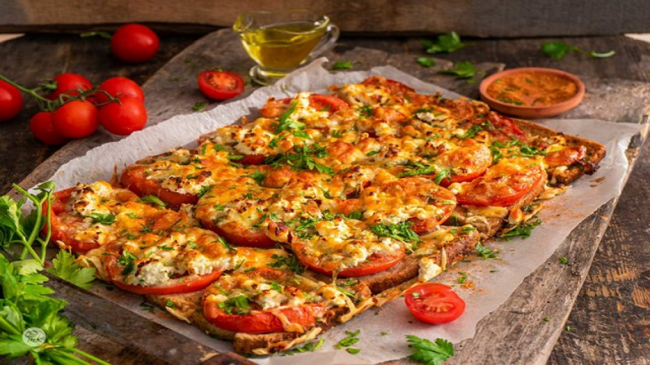 Поръсете с шарена сол, ситно нарязан магданоз, натрошеното сирене и настъргания кашкавал и сложете в загрята на 200 градуса фурна да се запекат. Поднесете филиите с домати топли./Рецептата е вцета от matekitchen.com