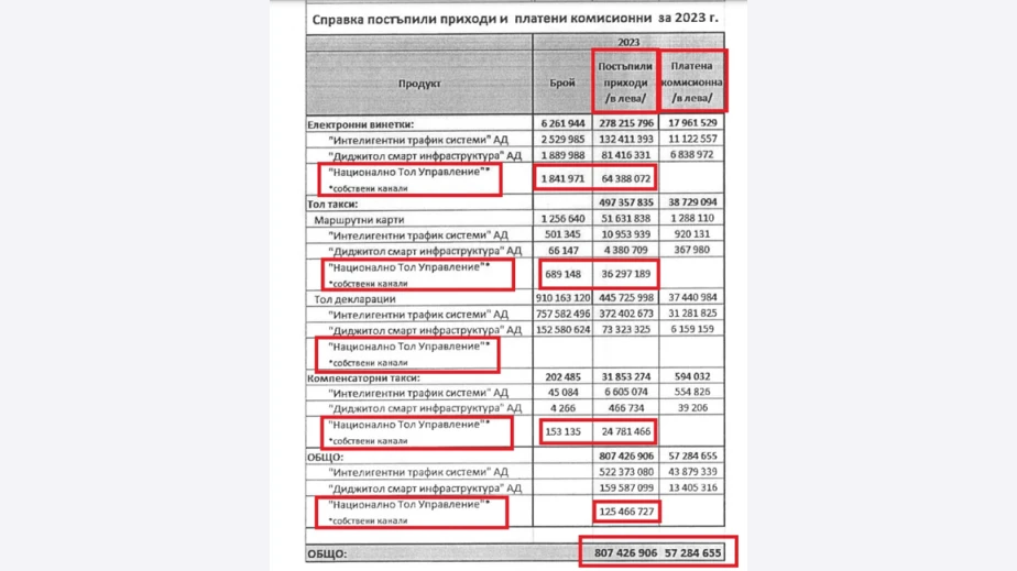 Със своите около 20 души фирмата на Арнаудова е събрала 522 373 080 лева за 2023 г. от пътни такси и е-винетки, за което е прибрала комисионни на стойност от 43 879 339 лв.