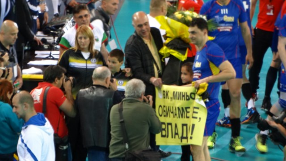 От клуба бяха подготвили и огромен букет с цветовете на „Миньор“, който връчиха лично на големият спортист Владимир Николов в края на церемонията.
