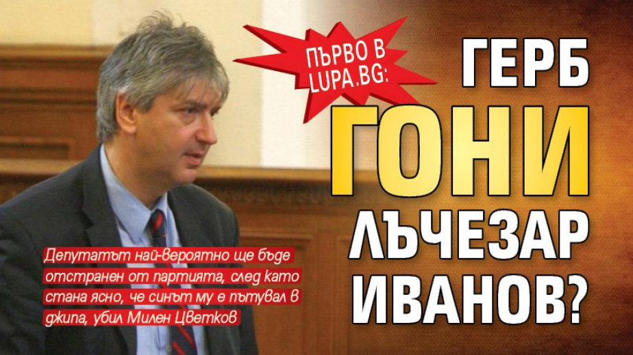 Най-вероятно депутата от ГЕРБ Лъчезар Иванов, чийто син се оказа третия пътник в скъпия джип, убил на пътя журналиста Милен Цветков, ще бъде отстранен от партията, научи Lupa.bg от свой източник в партийната централа.
