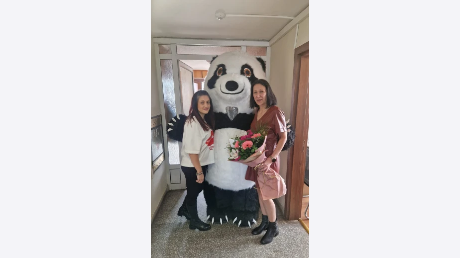 Латинка Кирилова посрещна своя рожден ден на работното си място вчера с прекрасна изненада. Голяма панда влезе в сградата на общината и поднесе букет и подарък на рожденичката от най-близките й приятелки в Счетоводния отдел в общинската администрация.