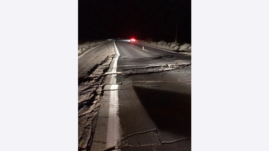 Близката магистрала е затворена, след като трусовете напукват и преместват участъци от пътя. /Източник: БТВ