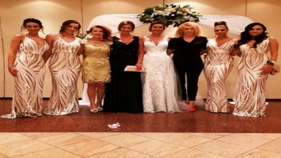 Шаферките в състав Михаела Маевска, Цветелина Найденова, Ренета Камберова и Снежана Дечева бяха с еднакви златни рокли. В такъв нюанс беше и тоалетът на Илиана Раева./Източник: Хотарена