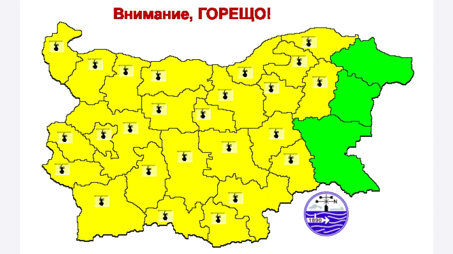 Очаква се в областите, в които е обявено предупреждението, температурите да достигнат между 35 и 39 градуса.