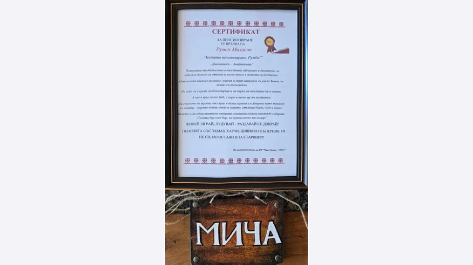 След дълги години работа, Румен решил да се пенсионира и да се върне в родното Дивотино. На празненството специален поздрав му поднесли танцьорите от Ансамбъл „Граово“ в Перник и гайдари от Смолян. Гостите му подарили страхоти неща – хлопатари, тъпан, 20-литрово буре... Най-атрактивният подарък обаче бил...козата Мича.
