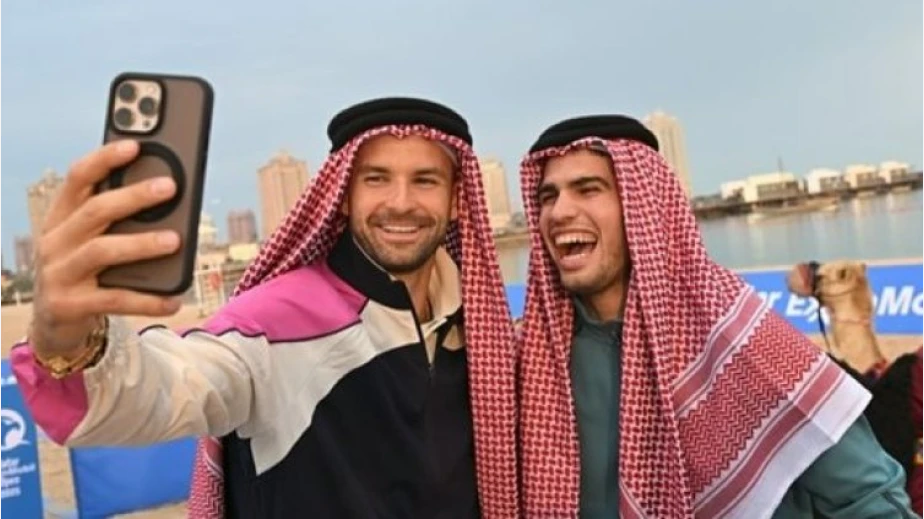 Най-добрият български тенисист, заедно с Новак Джокович, Карлос Алкарас и Стефанос Циципас се включиха в рекламно шоу на плаж в столицата на Катар, снимки от което заляха социалните мрежи, съобщава "24 часа".