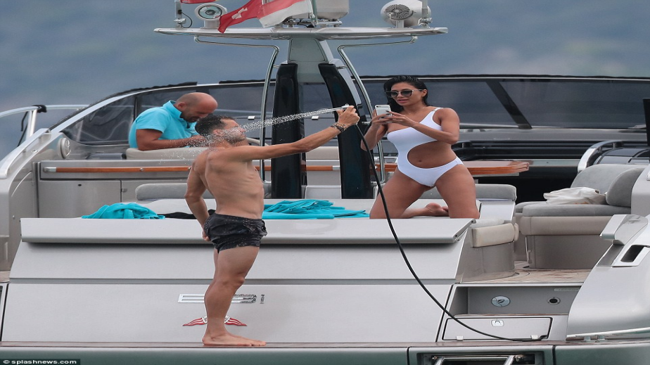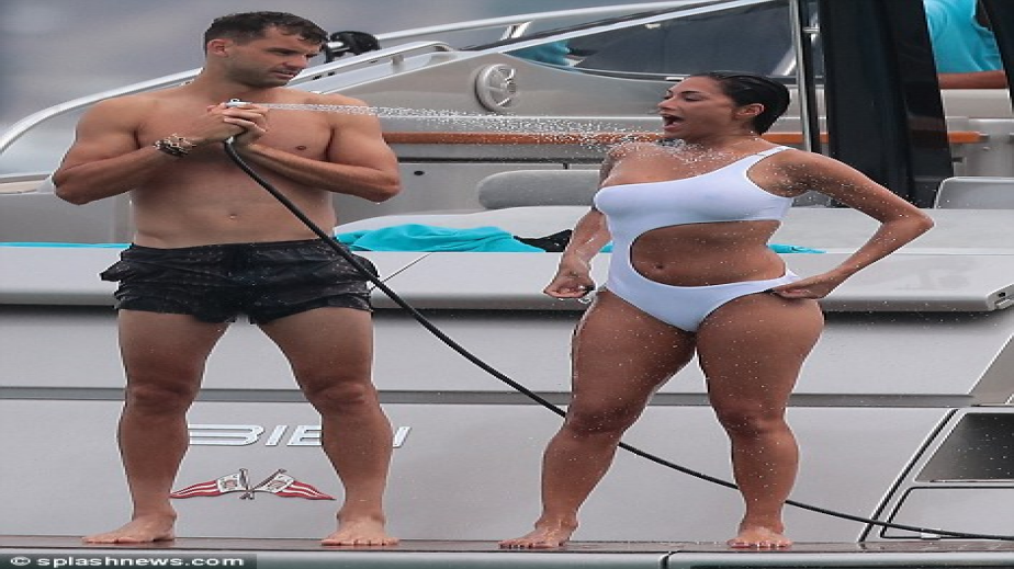 40-годишната американка демонстрира апетитните си форми в бял бански, а направените снимки показват как двамата се заиграха и охлаждаха страстите си с помощта на маркуч.