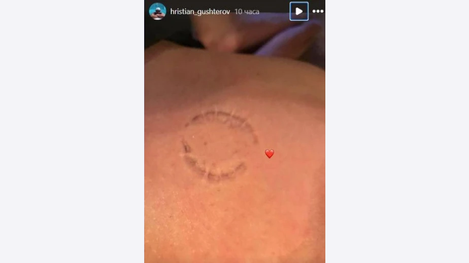 На един от фотосите обаче ясно се вижда и че въпросната жена не е тиха вода, а истинска тигрица, по-опасна от пумата в Шумен. Гущеров публикува кадър, на който се виждат жестоки следи от ухапване по гърба му. Снимката е придружена от мило сърчице - за тези, които биха поставили под съмнение любовния елемент в страстната захапка.