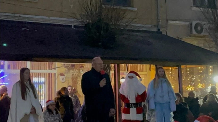 Коледни сладки и аромтно греяно вино на запалването на светлините на елхата в Земен