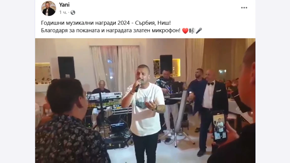 Яни Янков бе сред поканените участници на тазгодишните музикални награди в Сърбия. Събитието се състоя преди ден в сръбския град Ниш.