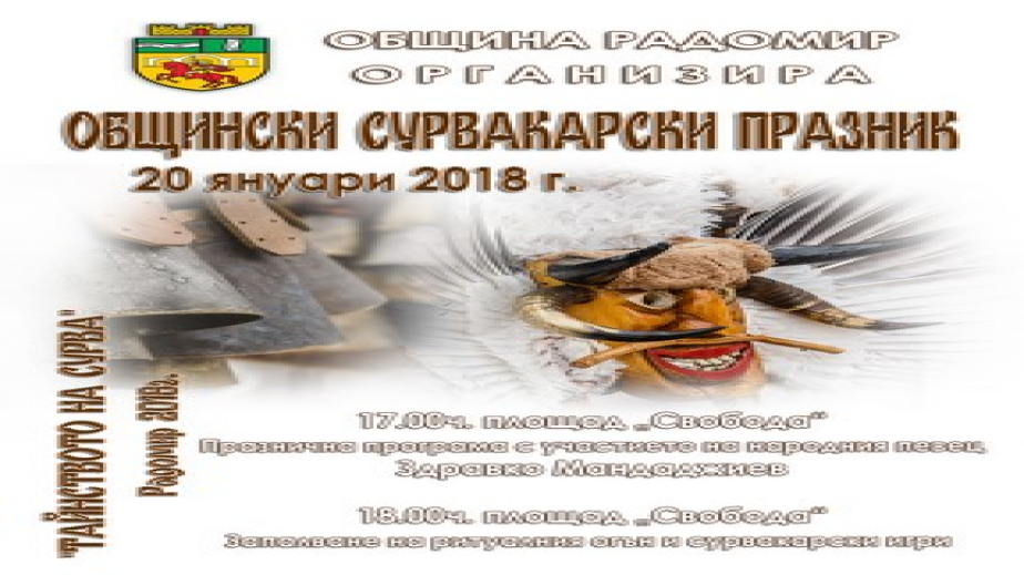 В празника ще участват 9 групи от Радомирско. Гостуващи сурвакари пък ще пристигнат в града от Батановци и земенското село Пещера. Ще гонят злото и най-малките приемници на обичая – възпитаниците от детската градина „Радомирче“.
