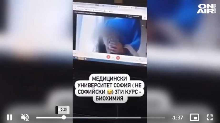 Видеото ни изпращат студенти от Медицинския университет в София. Твърдят - това е онлайн лекция по биохимия от последните дни. Преподавателката е от Предклиничния университетски център, разказват студенти. На видеото се вижда как мъж застава зад преподавателката, а тя облизва пръстите на ръката му.
