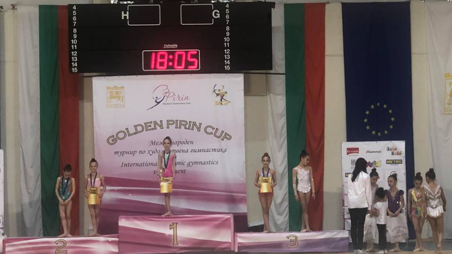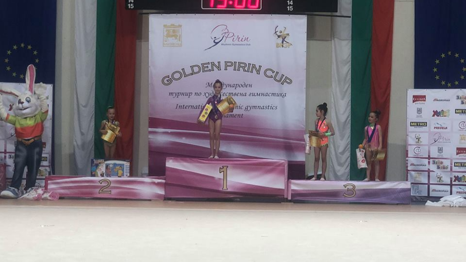 Малкият ангел от клуба по художествена гимнастика”Виктория”-Перник-Сияна Борисова за пореден път доказа класа,прецизно изпълнение и артистичност.Тя заслужено обра овациите на журито и публиката в Първия международен турнир “Golden Pirin Cup” в Благоевград,който се проведе от 3-ти до 6-ти май в зала „Скаптопара“. Златното момиче от Перник Сияна Борисова бе отличена с най-високата награда-първо място и златен медал за това,което показа на международния форум.Освен със задължителните елементи при изпълнението и своята артистичност,малката грация спечели симпатиите на публиката и със своята чаровност и естетическа изтънченост на движенията.