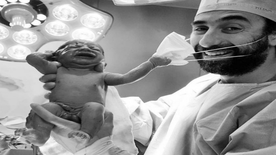 Под публикацията си в Инстаграм д-р Самер Шаиб написа: "Всички искаме знак, че ще свалим маските скоро". Както стана ясно по-късно снимката е направена от един от медиците, асистирал на раждането. Самият д-р Шаиб, който е лекар от 16 години, се превърна в звезда.