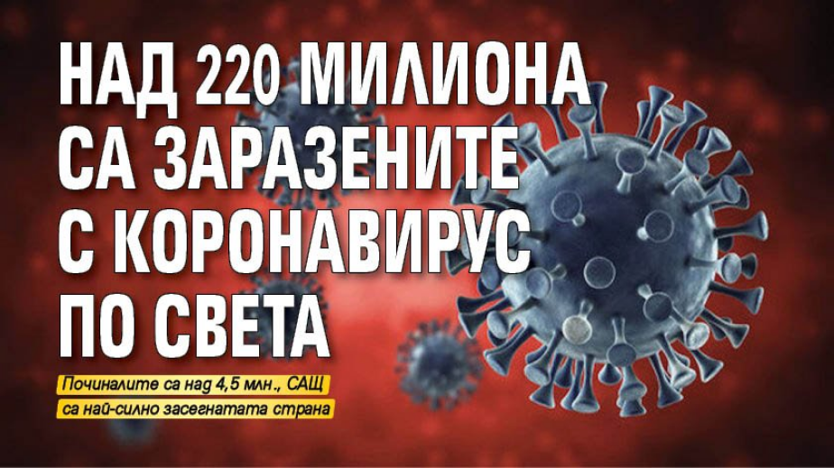 Най-малко 220 278 710 са регистрирани случаи на коронавирус.