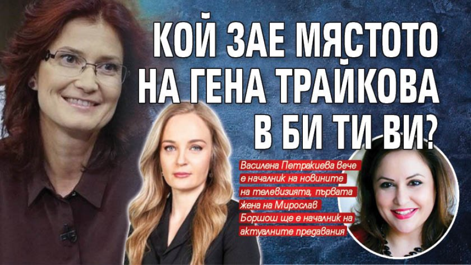 Журналистката Веселина Петракиева (на снимката вляво) зае мястото на напусналата Гена Трайкова и става главен редактор на новините на Би Ти Ви, съобщиха официално от медията днес. Петракиева има над 20-годишен опит в медиите, а в Би Ти Ви е от 2010 г.
