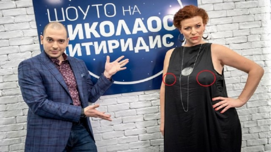 Големите зърна на актрисата веднага надигнаха черната рокля и дори водещият Цитиридис не успя да сведе поглед от деколтето на своята гостенка. А междувременно в социалните мрежи попиляха актрисата за вида, в който се появи в национален ефир.