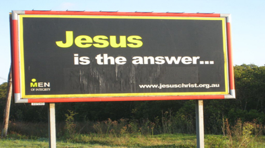 През годините Исус Христос е могъщ символ и инструмент за реклама на персоналните брандове на редица свръхбогати и популярни телевизионни евангелисти в САЩ като Били Греъм, Пат Робъртсън, Джери Фолуел и др. За религиозни бизнесмени като тях “Исус е отговорът” и те са готови да инвестират масивни ресурси в разпространяването на подобни лога и рекламни изображения.