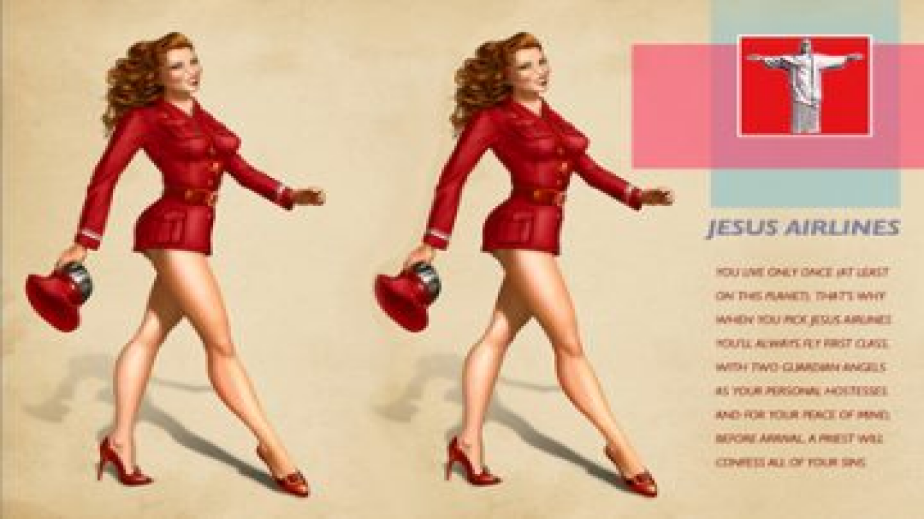 Преди няколко години млади предприемачи излизат с идеята за тематични авиолинии на името на Исус с акцент върху небесната и божествена природа на своята търговска дейност, обвързана на символично и митологично ниво с Христос. Важен акцент пада и върху привлекателните стюардеси, интерпретирани като прекрасни небесни ангелчета.