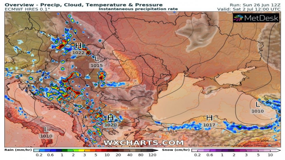 Първата седмица на юли ще е преобладаващо слънчева и гореща с минимални смущения около средата на периода. Във вторник и сряда (5-6 юли) ще прониква по-студен въздух, който ще създава неустойчивост с потенциал за гръмотевични бури с валежи, но те ще са строго локални. Дневните температури с леки колебания ще се движат в летния диапазон – около и над 30 градуса.
