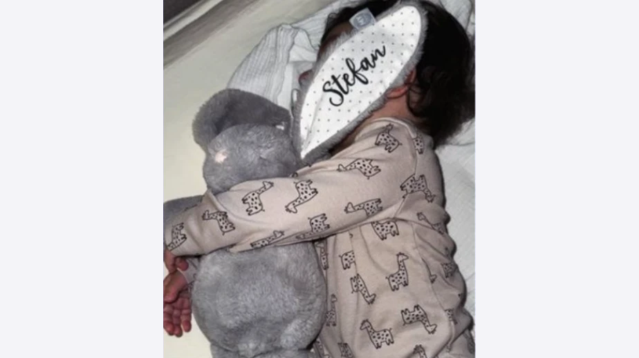 "Честит Великден", написа тя и пусна кадър, на който се вижда как синът ѝ спи, гушнал зайче, а на едното му ухо е избродирано неговото име.