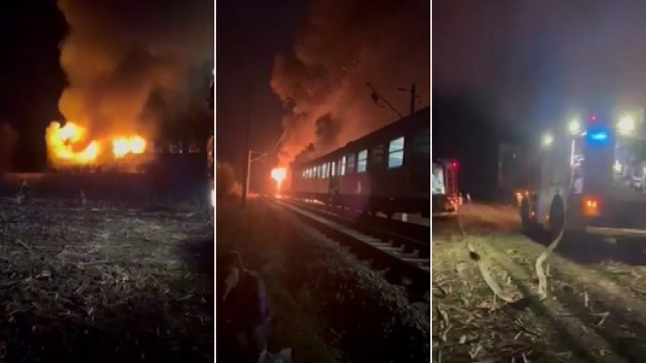Няма данни за пострадали пътници. Хората са евакуирани. От полицията посочиха, че има пострадал машинист на влака, а два вагона са изгорели.
