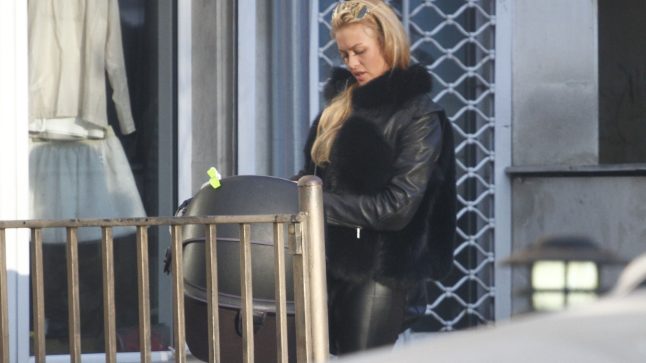 На излизане от магазина Яна носеше бебешкото кошче с Ян, а момче от бутика й помогна с покупките, като ги отнесе до джипа й.