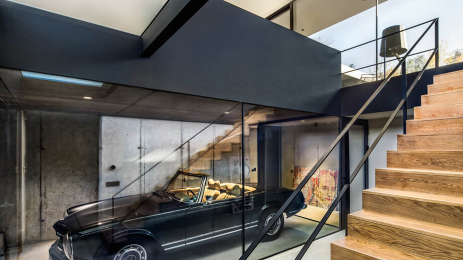"Клиентът е български инвестиционен банкер, който имаше две важни изисквания. Искаше дом, в който той може гордо да демонстрира своя класически автомобил, и който в същото време да е удобно малко жилище за семейството му", казаха архитектите.