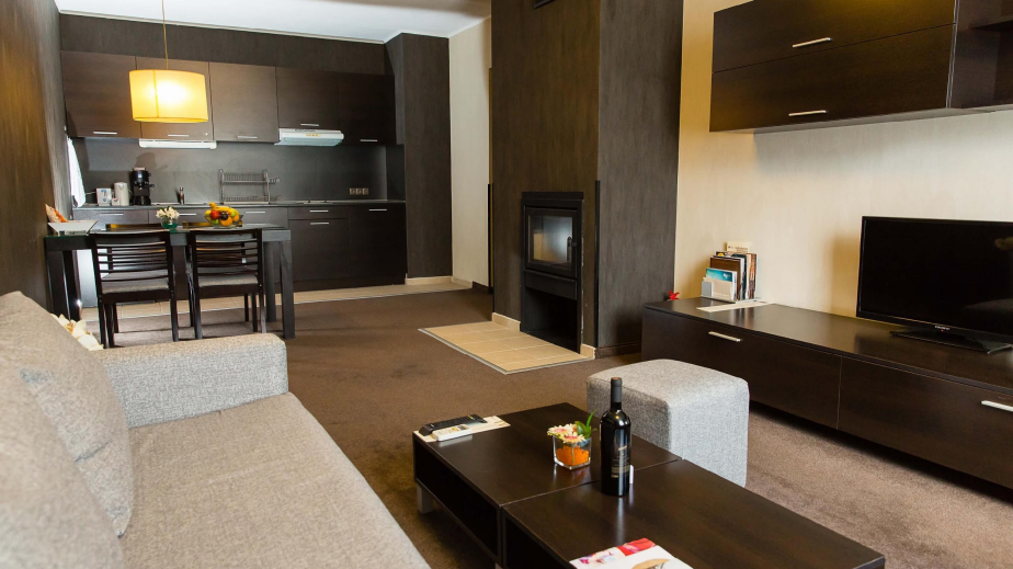 Върхът в настаняването е невероятният Президентски апартамент. Дизайнът му е в планински стил, което прави обстановката изключително уютна. Апартаментът е със самостоятелна вентилация и климатизация.