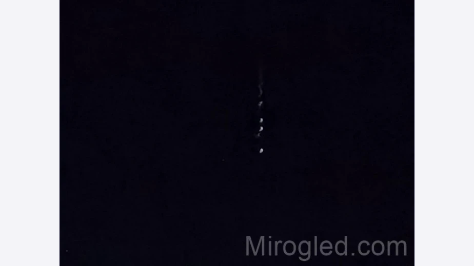 „Излязох на терасата да пуша и погледнах в небето. Видях нишка от светлини, която се движеше. Не беше заря, защото нямаше звук и не се разпръскваше. Извадих телефона и снимах“, разказва свидетелка.