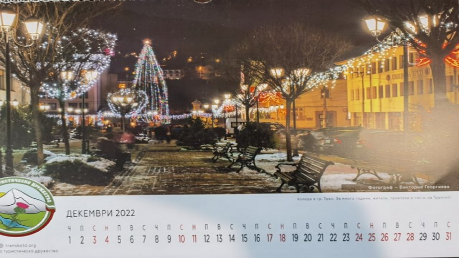 Трънското туристическо дружество издаде за четвърта година календар с фотоси от красивите кътчета на трънската природа. Фотосите са подбрани сред стотици като 4 са на Бисер Янакиев, 2 са на Стефан Захариев от сдружение „С раница и колело“, два на Виктория Георгиева и по един от Иван Панкев, Георги Палахутев, Руслан Зарев и Христо Бакрачев.