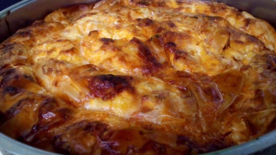 След като сме наредили всички кори, с помоща на четка мажем отгоре с малко олио и печем в умерена фурна за около 40 мин или до готовност (в зависимост от фурната).