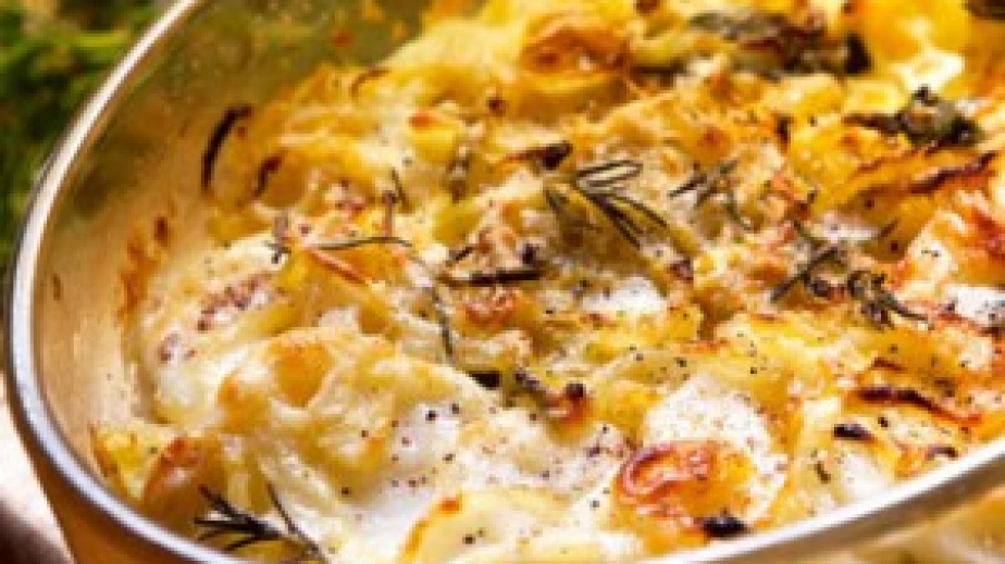 Нарежете зелените подправки с лука ситно и ги разбъркайте със сол и зехтин. Объркайте нарязаните на кръгчета тиквички и картофи с тази ароматна смес.Подредете ги в намазнена тавичка, като редувате картоф и тиквичка. Сложете да се изпече в умерена фурна, като накрая добавите и настъргания кашкавал, който трябва да се запече за 5 минути.