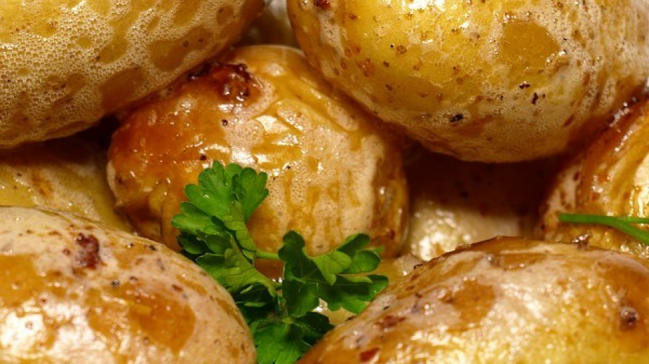 Измитите средно големи картофи се поставят в тенджера и се заливат с вода. Прибавя се необеленият чесън, розмаринът и мащерката.Тенджерата се похлупва и картофите се варят на умерен огън 20 минути или до готовност. Отцеждат се от водата и се изваждат подправките.Картофите се поръсват със солта и се подсушават в тенджерата на силен огън, като се раздрусват периодично.