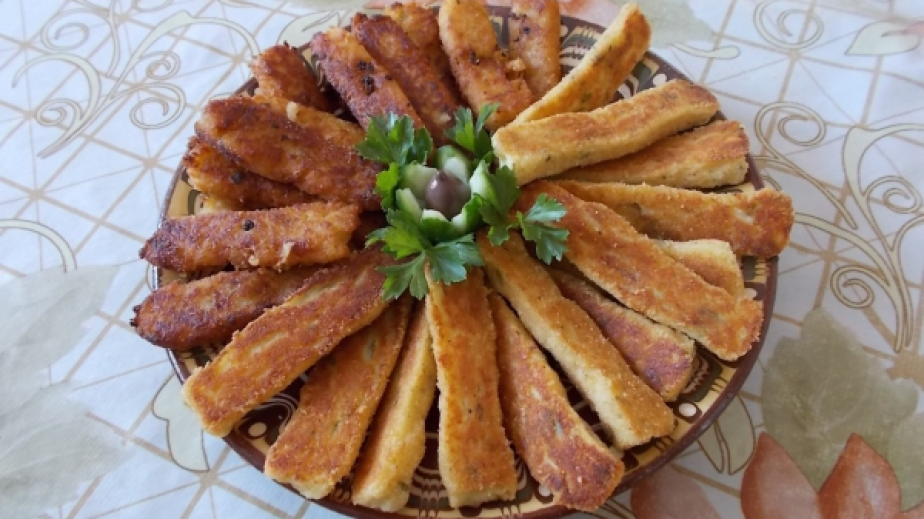 Половината от тази смес изпържих в загрято олио. Поднасяме със свежа салата.